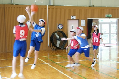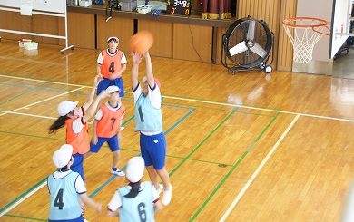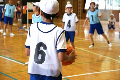 バスケットボールは、互いにパスやドリブルでボールを運び、攻めや守りを繰り返しながらゴールにシュートをして得点を競い合う集団対集団のボール運動です。