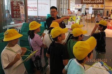 先週(9月8日、10日、12日)、3年生が社会科の校外学習で「ベイシアさくら氏家店」に行きました。今回の校外学習は「物を売る仕事ではたらく人たち」という単元の学習で、地域に見られる販売の仕事に関心をもち、その仕事に携わっている人々の工夫や、国内外の他地域との関わりなどについて調べ、スーパーマーケットは自分たちの生活を支えていることを知る事を目的としています。