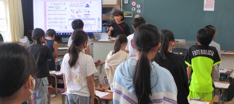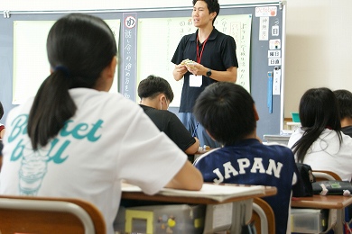この日は、11月5日(水)に着任した益子侑里香先生の紹介も行いました。益子先生は、主に4年生の外国語活動と5・6年生の外国語を担当しています。「益子侑里香先生!よろしくお願いします。」