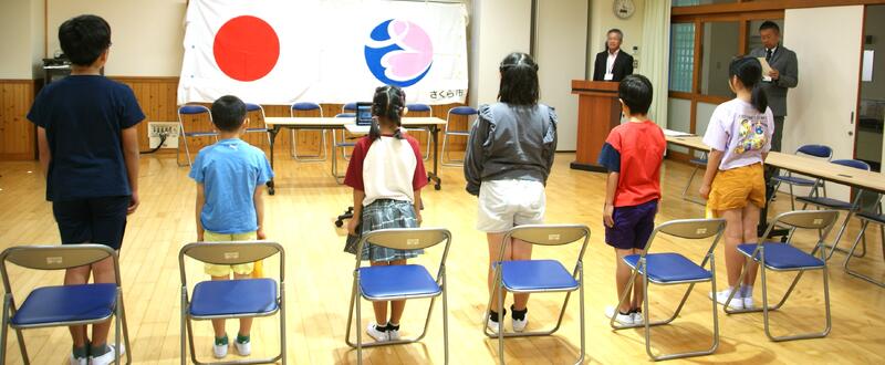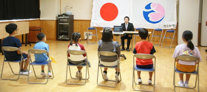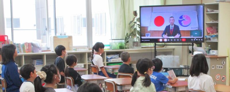 なお、写真のバックパネルはさくら市20周年として購入したものです。今後、子供たちの表彰や児童会活動紹介など、オンライン配信などで活用していきます。