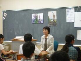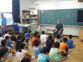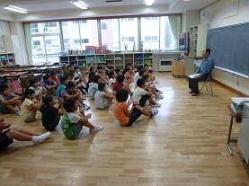 今朝は「民話の会」の皆さんと保護者のボランティアの方に来校いただき、朝の読書の時間に児童向けの民話の語りと読み聞かせをおこないました。