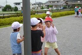 行き帰りの道路の安全な歩き方や「ボール遊び」「鬼ごっこ」、遊具を使っての遊びを通して、公園で守らなければならないマナーなどについても学習しました。梅雨の中休みで、久しぶりにお天道様が顔を出し、絶好の校外学習日和となりました。