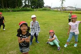 本校学区内には、徒歩で行ける「ゆうゆうパーク」や「勝山公園」「さくら市ミュージアム」があり、子ども達の校外学習の場として活用させてもらっています。今回は学校に隣接している“リバーサイドきぬの里”内にある「上阿久津近隣公園」に行って、友だちどうしの遊びを楽しんだり、草花や虫などに触れ、自然に親しんだりする活動を行いました。