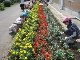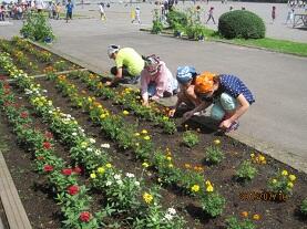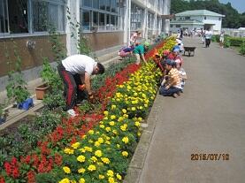 7月10日には、梅雨の中休みで蒸し暑い中でしたが、各学年の花壇と人権の花の花壇、そして、校庭の石拾い+除草活動を行いました。各学年の分担場所に分かれての作業を行いましたが、子ども達は、暑さや雑草に負けない意気ごみで、グリーン活動を行いました。