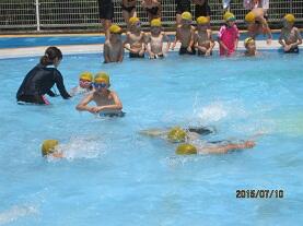 どの学年も「水遊び」「浮く・泳ぐ運動」「水泳」の授業が大好きで、七夕飾りの短冊にも「クロールが上手になりますように」とか「水中ジャンケンができますように」「プールで目を開けてもぐれますように」などという願い事があるくらいです。
