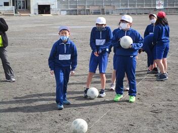 本日、2校時目に5-3 3校時に5-1 4校時に5-2がフットゴルフの体験をしました。
