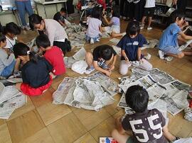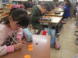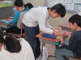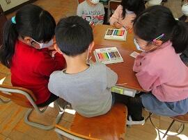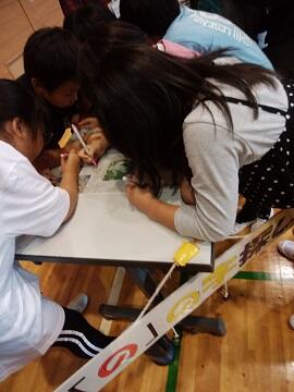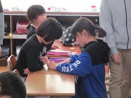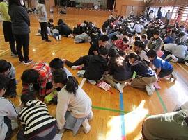 1~5年生が班に分かれて、6年生へのメッセージカードを作りました。