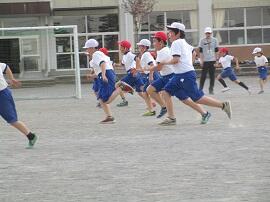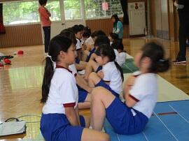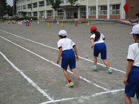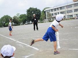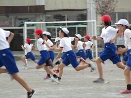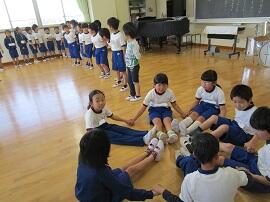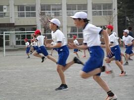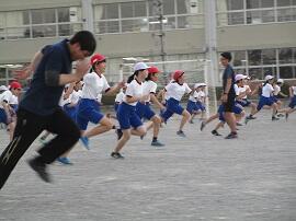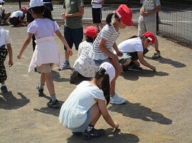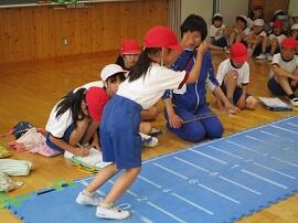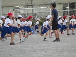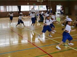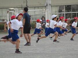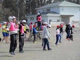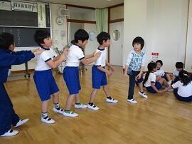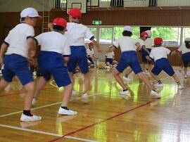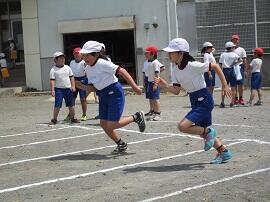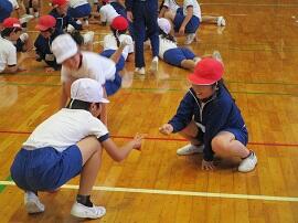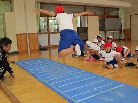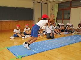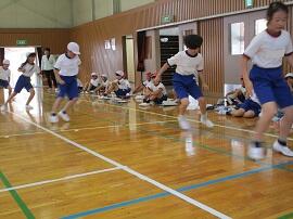 始めに「はやぶさ跳び」ができる児童が、跳んで見せてくれました。