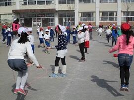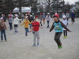 業間休み(マッスルタイム)は、全校で縄跳びをしました。