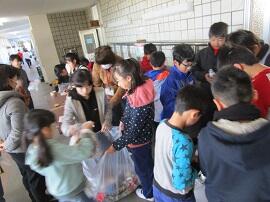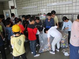 2月12日(火) ようこそ、南小へ:1年・生活科 アルミ缶回収