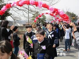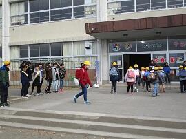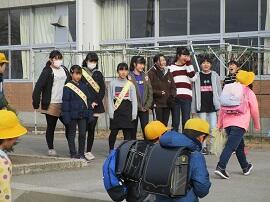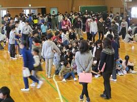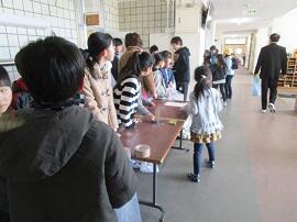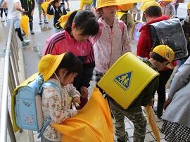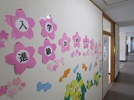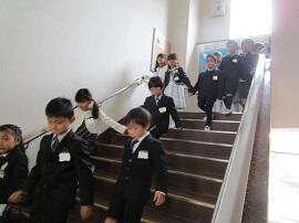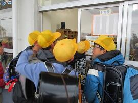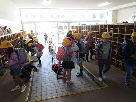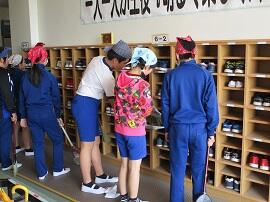 昇降口では、5・6年生が1年生を待っていてくれました。
