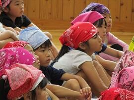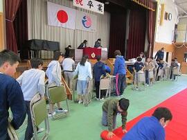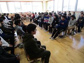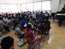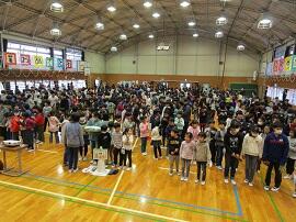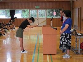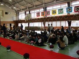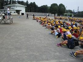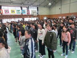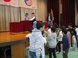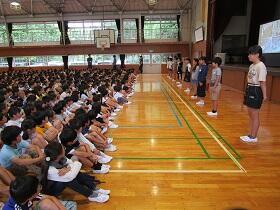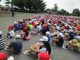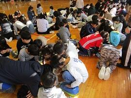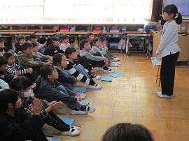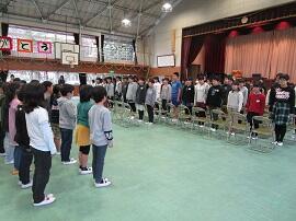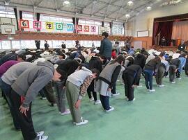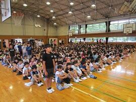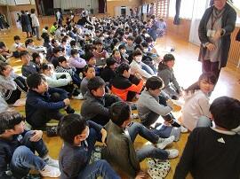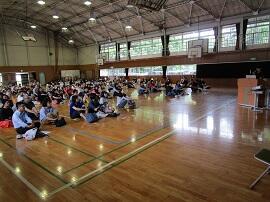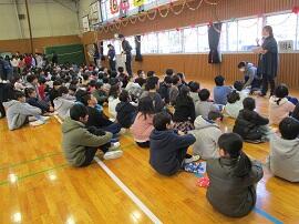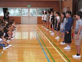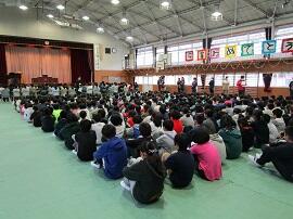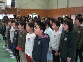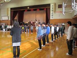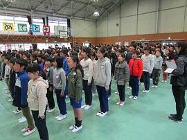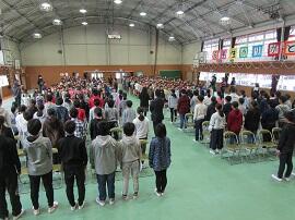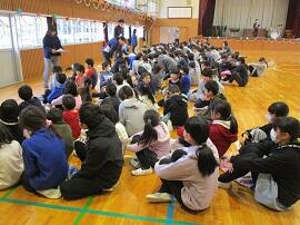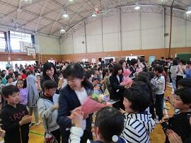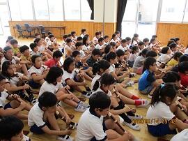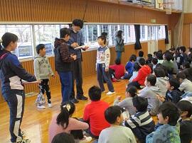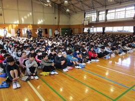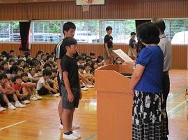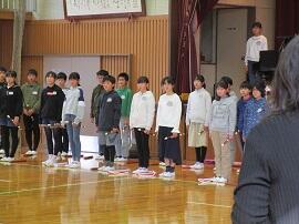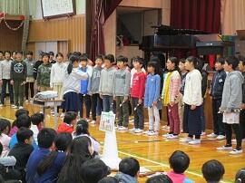 大会で健闘した児童を、全校でたたえました。