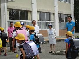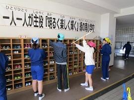 昇降口では子どもたちも加わって、元気なあいさつが交わされました。