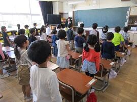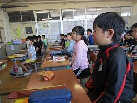 5年生のクラスの子どもたちが、元気なあいさつを交わしていました。