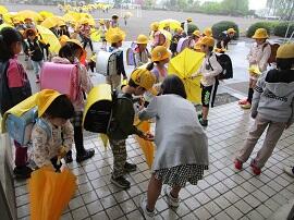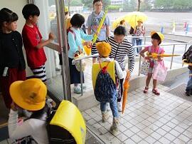 今朝は雨の中での登校となりました。