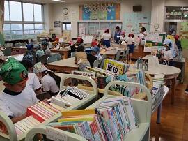 業間の図書室には、たくさんの子どもたちが訪れています。