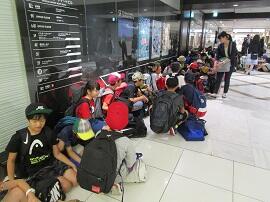 本の貸し出し手続きを待つ、子どもたちの列ができていました。