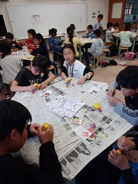 その後、一緒に「びゅんびゅんごま」を作りました。