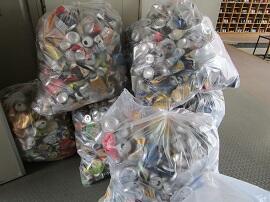 今朝も、たくさんのアルミ缶が集まりました。