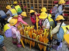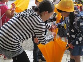 自分で傘をたたむことができるよう、優しく教えてあげていました。