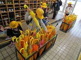 風の影響で、傘が壊れた児童が数人いました。けがはありませんでした。
