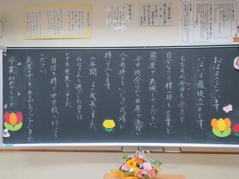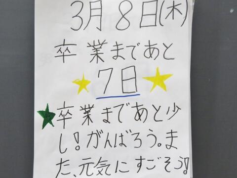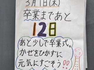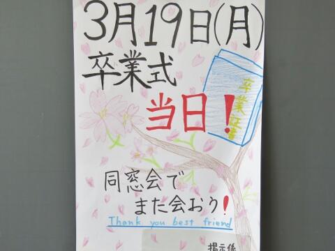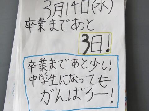 今日は、卒業式の予行を行います。今朝一番で、「三十九度の熱」があると連絡が入りました。インフルエンザじゃなければいいのですが・・・お大事にしてください。
