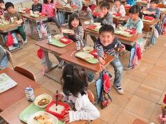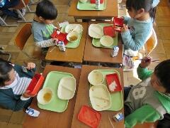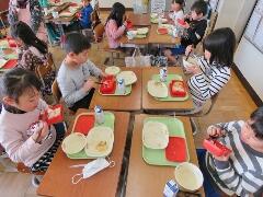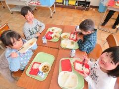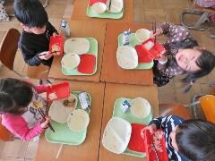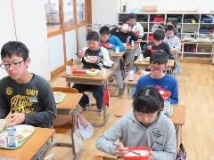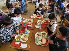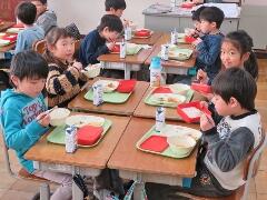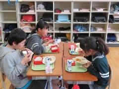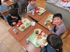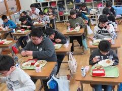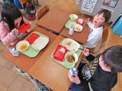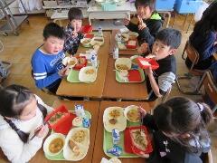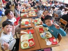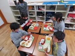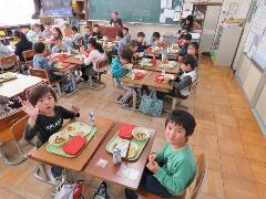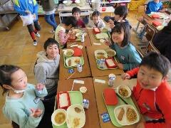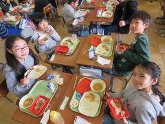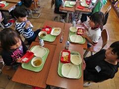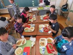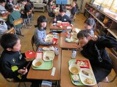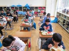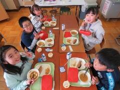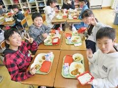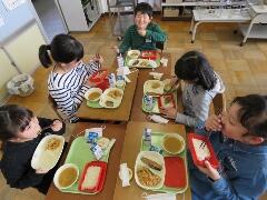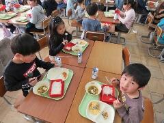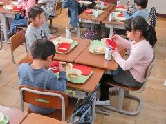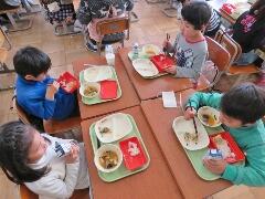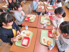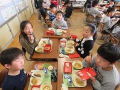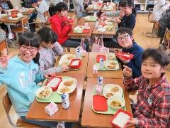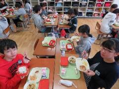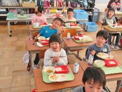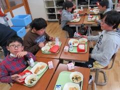 とてもおいしく食べています。やっぱり、みんなで食べる給食はおいしさ倍増ですね!