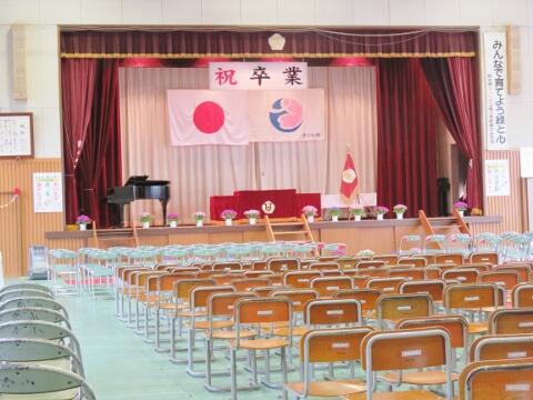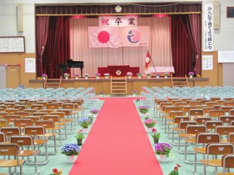 4年生5年生の働きで、卒業式会場・準備が整いました。南小のよき伝統が引き継がれています。「在校生の皆さん ありがとうございました。」