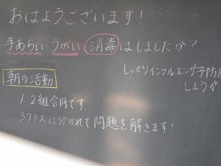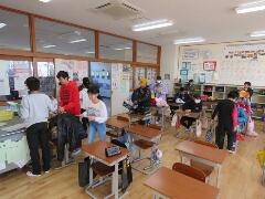 寒空の中、昇降口の前で元気な5年2組の子どもたちが「おはようございます」と、あいさつで元気のおすそ分けをしました。上級生として、これからもお手本になるあいさつや行動をしてくださいね!期待しています。 (担当:小野な)