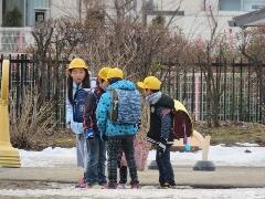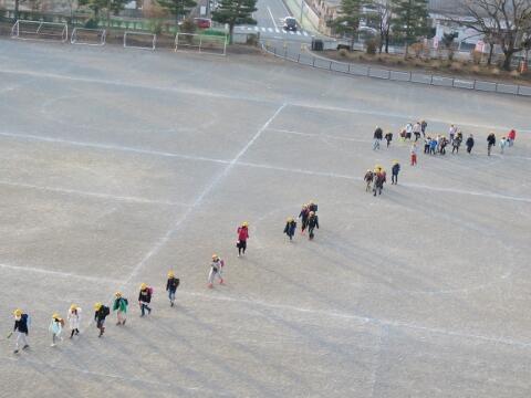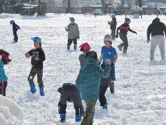 今日は、真っ白な校庭で遊ばせたいと思います。(職員で道路の雪かきをしました。)