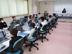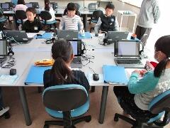 前時の復習から、応用(アニメーション)の仕方を学びました。文字が様々に動いたり、跳んだりする野様子を見て感動していました。