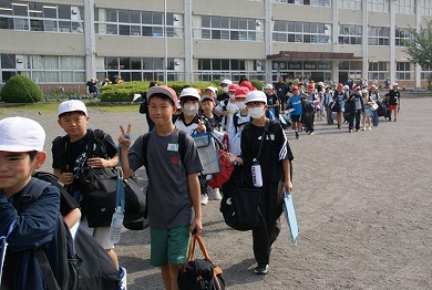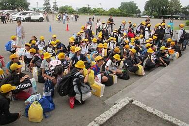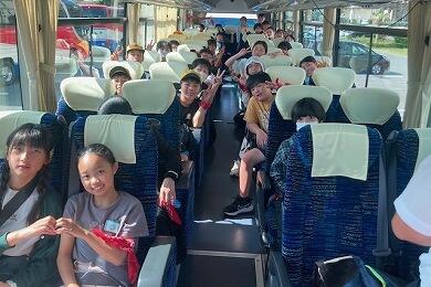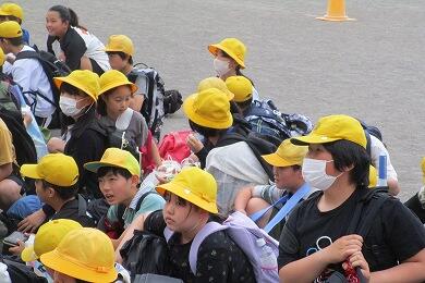 5年生の子供たちが、2日間の臨海自然教室の宿泊学習を終え、予定より30分早く南小学校に帰ってきました。