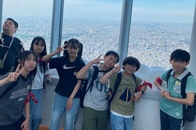 スカイツリーの上から見ると、東京の大きなビルも本当に小さく見えます。普段見ることのできない風景を目にして、子供たちの気分も高まりました。