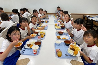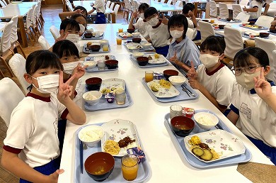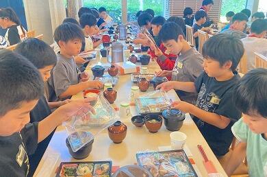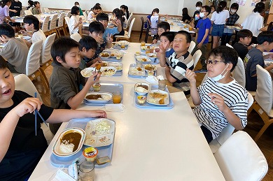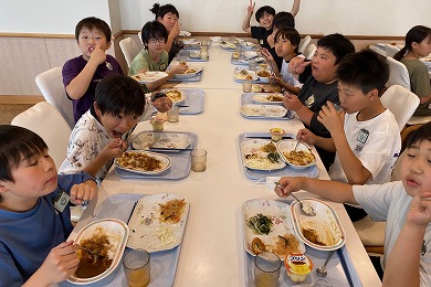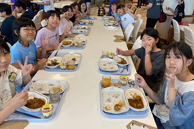 臨海自然教室の体験活動はすべて終了しました。2日目の昼食は、カレーライスとおかずバイキングです。みんなで美味しくいただきました。