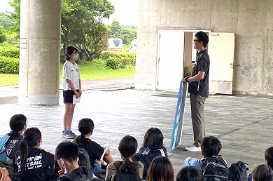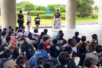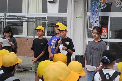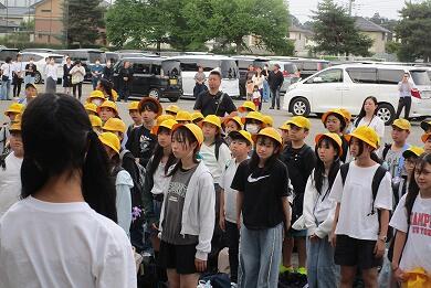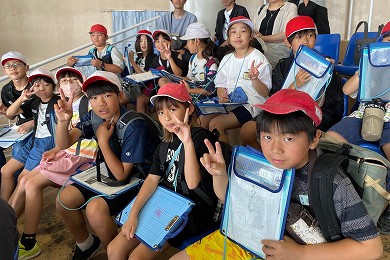 出発式での子供たちの表情から、アクアワールド大洗水族館見学や海浜スコアオリエンテーリング、創作活動、塩づくりなどの体験教室、そして宿泊をとても楽しみにしている様子が伝わってきました。