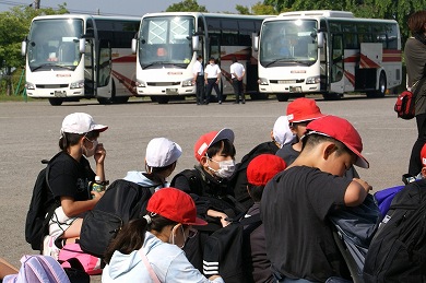 これからバスに乗って南小学校へ帰ります。