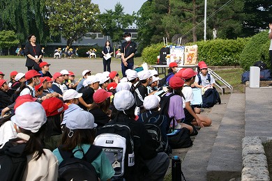 学区内には、徒歩で行ける「ゆうゆうパーク」や「勝山公園」「さくら市ミュージアム」があり、子供たちの校外学習の場として活用しています。この日は「上阿久津近隣公園」に行って、友だちとの遊びを楽しんだり、草花や虫などに触れ、自然に親しんだりする活動を行いました。