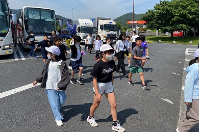 5年生を乗せたバスは、真岡ICから北関東自動車道を走行し、予定どおり「笠間PA」でトイレ休憩をしました。そして、最初の目的地である「アクアワールド大洗水族館」に向けて出発しました。