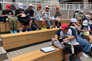 行き帰りの道路の安全な歩き方はもちろん、公園でのきまりやマナーなどについても学習しました。梅雨入りする前で、日差したっぷり、絶好の校外学習日和となりました。