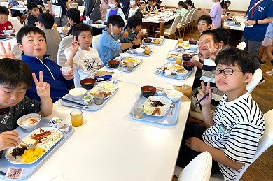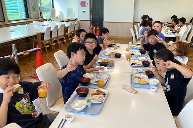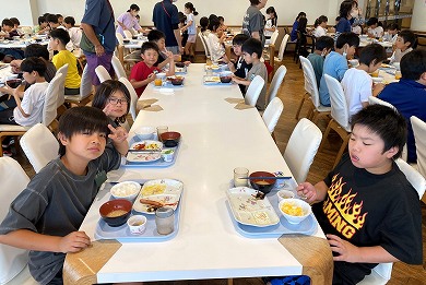 この夕食が「とちぎ海浜自然の家」での最初の食事になりました。たくさん動いたのでお腹が空いていたのか、何回もおかわりするなど食事を楽しんでいました。