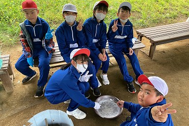 グループで話し合い、みんなで役割を分担し、協力し合って「塩づくり体験」をしました。美味しい塩の完成です。
