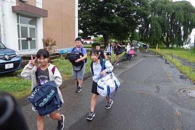 また、校庭で行う予定でした帰校式は、雨のため体育館で荷物の整理、確認をした上で実施しました。