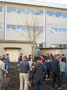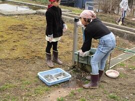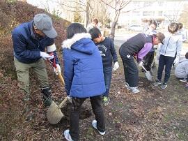 教えていただきながら、環境委員会の児童が肥料をやりました。