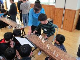 日本の伝統楽器である琴を実際に弾くことができ、よい経験になっていました。