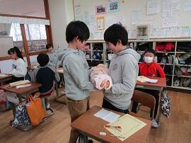 赤ちゃんの人形を抱いて、生命の誕生を実感的に理解しました。