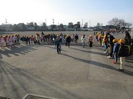 昼休みは校庭のあちこちで、子どもたちが大縄跳びをしています。