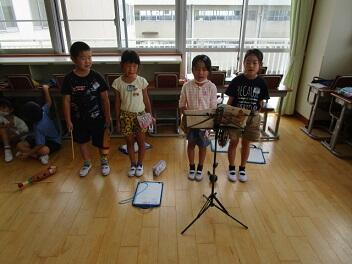 歌とリコーダー演奏、班別の民謡の発表でした。