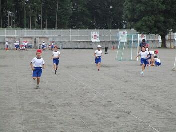約5分間、子どもたちは自分のペースで校庭を走ります。