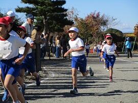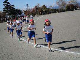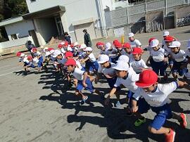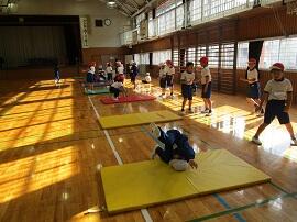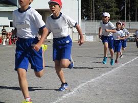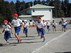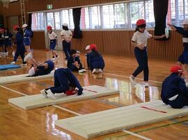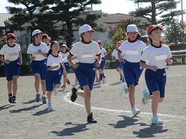 体育の授業では、半そで・ハーフパンツで元気に活動しています。