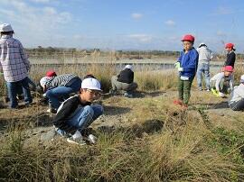 鬼怒川の河川敷で、外来植物の除去作業を行いました。